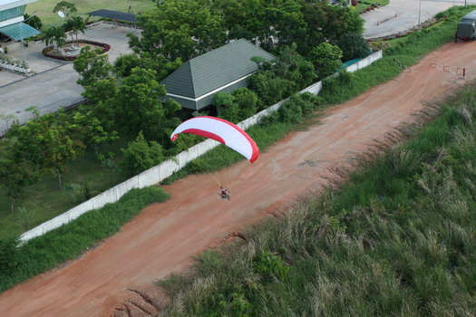 ร่มเป็นร่มใหม่ ครูทุยต้องบินอย่างระมัดระวัง เลยใช้วิธีการบินโลว์พาสไปก่อน เพื่อตรวจเช็คสาย เช็คผ้า รอยเย็บ จุดยึดต่างๆ ว่ามีอะไรผิดพลาดหรือไม่.....