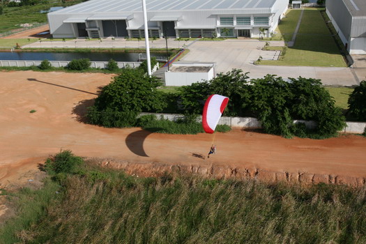 ครูทุย บินตรงไปหลังโรงงานฯ เพื่อสู้กับลมแรง ที่พัดมาจากอ่าวไทย