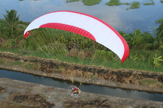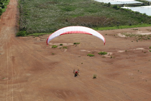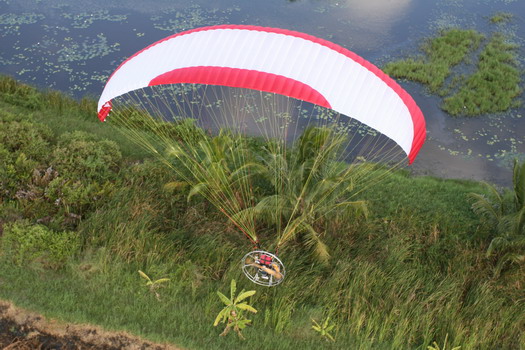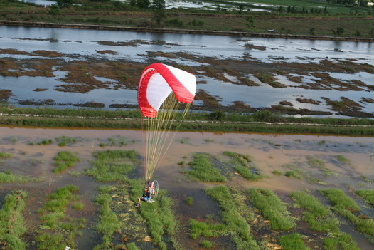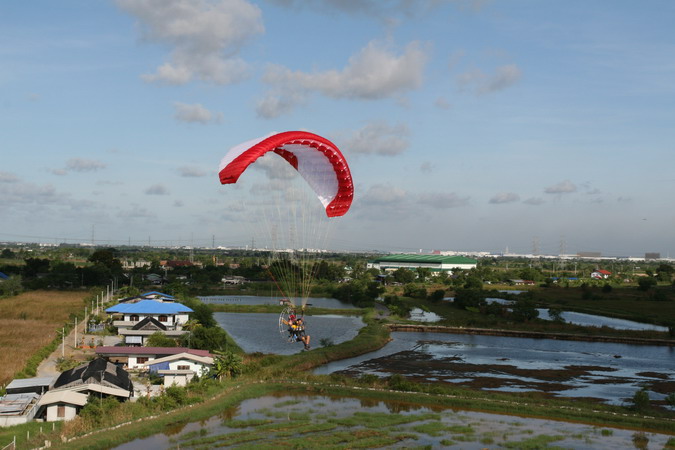 ครูทุย ลองบิน ทวนลม ตามลม ขวางลม ลองดึงเบรคให้ร่มหยุด ชูสายคอนโทรลอย่างเร็ว ดูว่า ร่มจะสับหน้า หรืออัตราตกจะเร็วมากน้อยขนาดไหน เพื่อจะได้ทราบสมรรถนะของการเกาะอากาศ
