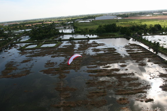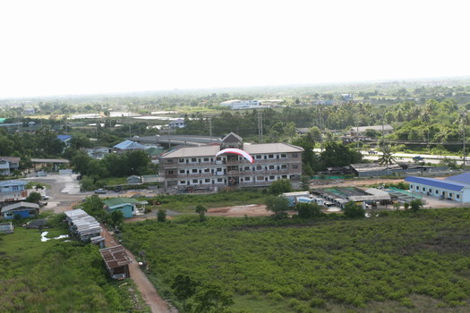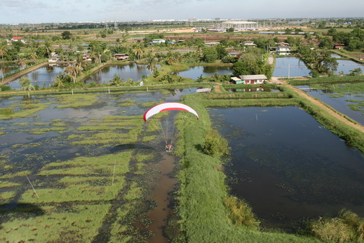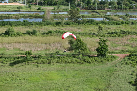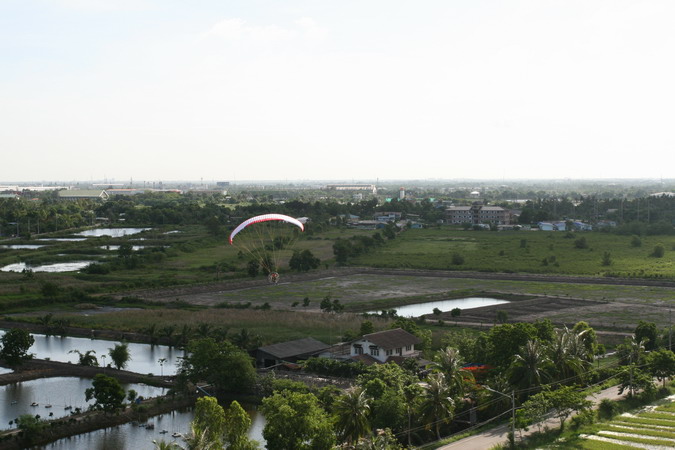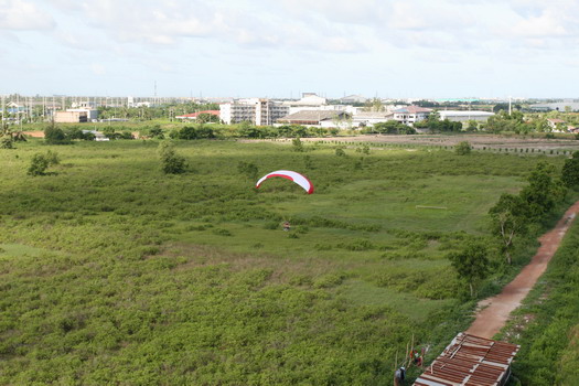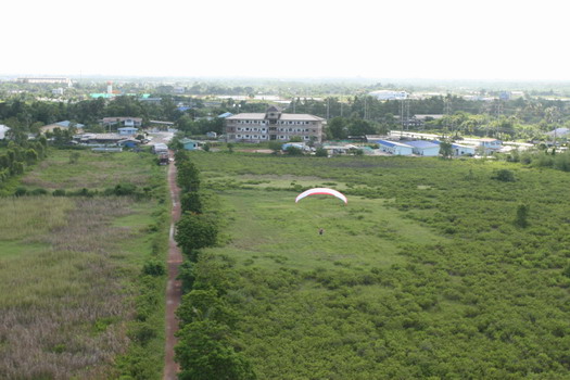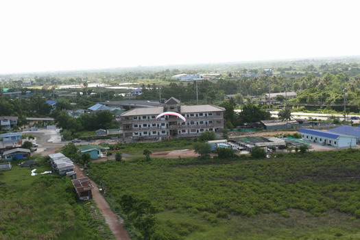 บินตรงไปสำนักโสธรร่มบิน ช่วงนี้ลมแรงแปรปรวนมาก ร่ม ELLE Xpert 28 ของผม เริ่มมีอาการโคลงเคลงบ้างเล็กน้อย แต่น่าแปลก ร่ม PLATINIUM บินผ่านไปเฉยๆ ไม่มีอาการใด ?????