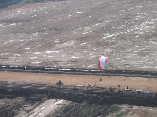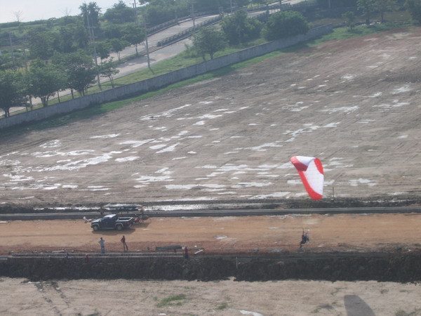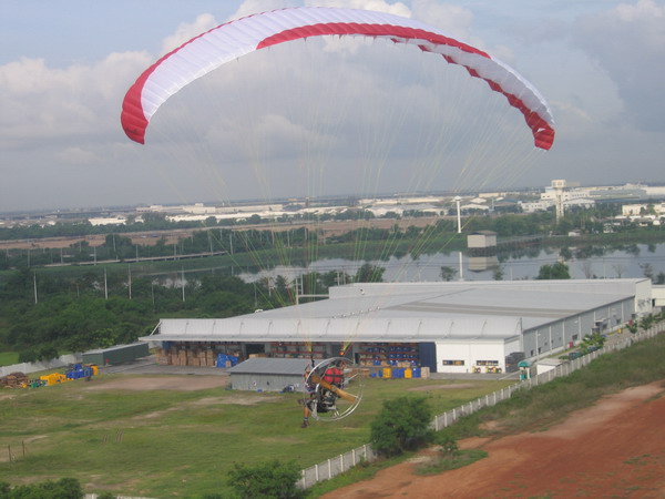 มองกลับหลังไป จะเห็น คุณสมพร คุณต่อ บินข้ามกลุ่มโรงงานฯ ตามหลังมาติดๆ