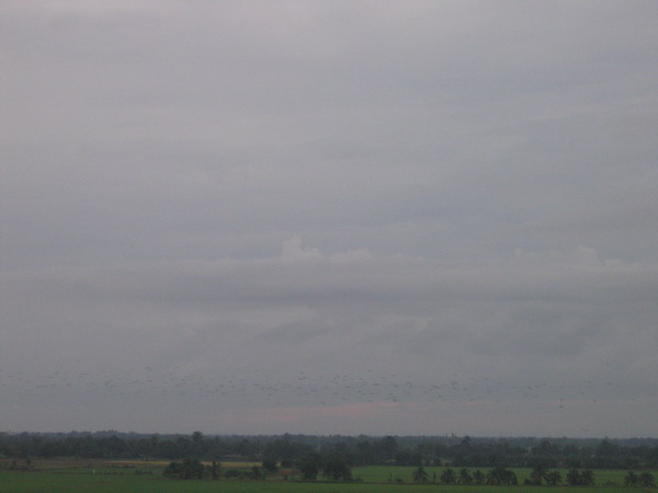 นกฝูงใหญ่ โบยบินกันเต็มท้องนา