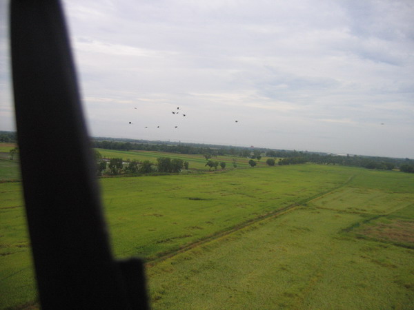 บินเดินทางไปนครนายก ในระยะต่ำๆ เพื่อหลบลม ภาพทิวทัศน์ตลอดเส้นทางจะเปลี่ยนแปลงไปตลอด