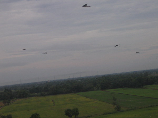 ฝูงนกใหญ่ บินเต็มท้องนา
