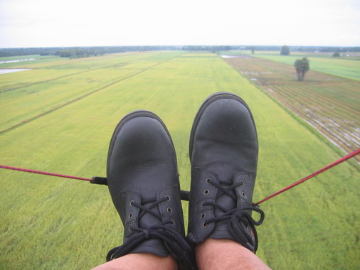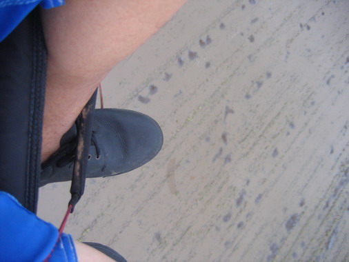 พักขาบนสายเหยียบ ด้านล่างเป็นดินโคลน ถ้าเครื่องดับ ไม่อยากคิดถึงสภาพ.....