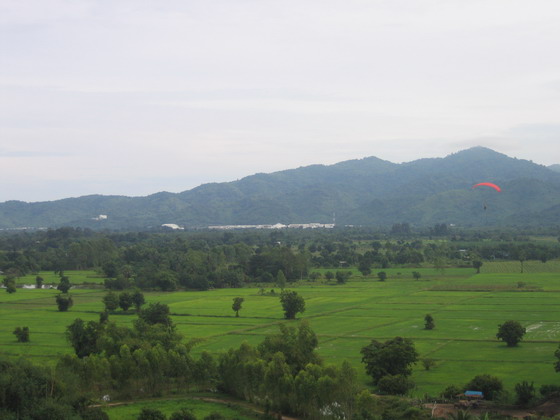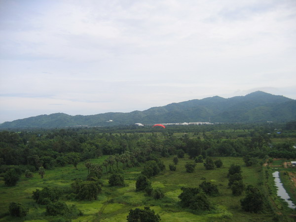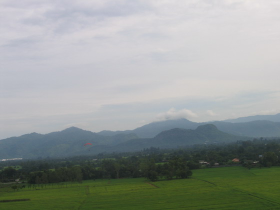 ตามทิศทางที่เราบินจากมอเตอร์เวย์บางปะกง ฉะเชิงเทรา มา นครนายก โดยบินตรงแต่ตกซ้ายนิดๆ เพื่อให้ตรงเขาด้านซ้ายอันเป็นตั้งของโรงเรียนเตรียมทหาร พวกเราตั้งใจที่จะบินมาเยี่ยมเยียนสนามของชมรมร่มบินนครนายก ซึ่งอยู่ภายในโรงเรียนเตรียมทหาร