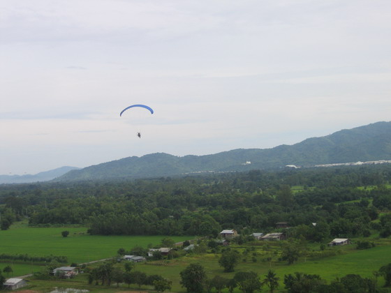 ขณะที่บินโต้คลื่นลมแปรปรวน สายตามองตรงไปยังขุนเขาเบื้องหน้าและพื้นดินสีเขียวเบื้องล่าง ร่มโนว่ายังคงโต้คลื่นลมต่อไปเรื่อย.......แต่จิตใจของผมล่องลอยคิดไปถึง ศาลของเจ้าพ่อขุนด่านบนเขาของโรงเรียนนายร้อยพระจุลจอมเกล้า..... ที่ครั้งหนึ่งผมเคยขึ้นไปสักการะ และได้ยินเรื่องราวของท่านขุนด่าน ที่รวบรวมสมัครพรรคพวกคนไทยเข้าสู้รบกับทหารญี่ปุ่นจนท่านขุนต้องพลีชีพในสนามรบ แต่ก็ทำให้ทหารญี่ปุ่นต้องล่าถอยออกไปจากพื้นที่แห่งนี้ สมัยสงครามโลกครั้งที่ 2