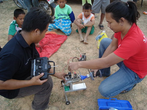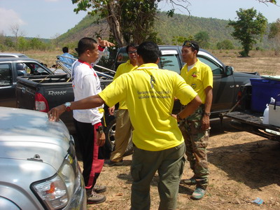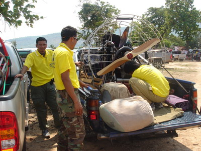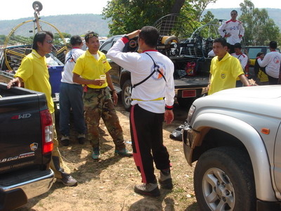 ปราจารย์ตั๊กโบ้แห่งร่มบินนครปฐม กำลังให้คำแนะนำทีมงานร่มบิน กทม.หลังจากถึงจุดที่ทหมายของงานย่าโม