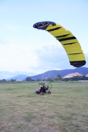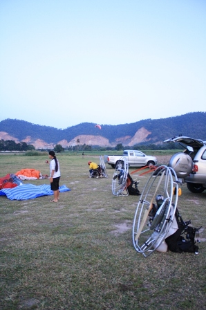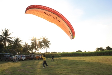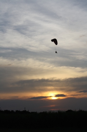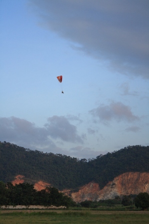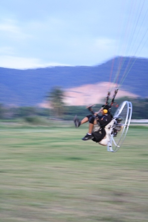 แถมอีกนิด พี่ๆ ท่านกำลังแปรขบวนต่อตัวกัน แต่แทนที่แต่ละท่านจะไต่หาความสูงกันคนละระดับแล้วค่อยจัดหมู่ ท่านกับบินเรียงแถวตอน ความมันจึงบังเกิดกับร่มตัวถัดๆ มา โยกมันอย่าบอกใครเชียว