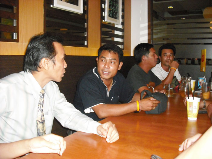 ....พี่บ๊วยและพี่ไผ่ กำลังถกเถียงกันว่างานแข่งขันที่บางแสน ชลบุรี ใครจะเป็นผู้มีสิทธเลือกจุดเฝ้าอาร์ซีก่อน ซึ่งยังไม่มีผู้ใดจะประณีประนอมกัน...