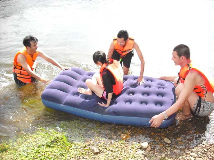 ช่วงบ่ายก็ไปล่องลำน้ำแควใหญ่เล่น โดยเอารถกระบะไปส่งที่แม่น้ำหลังโรงแรมพาวีเลียน แล้วล่องลงไป ขึ้นหลังบ้านคุณโจ้ .. มันส์ครับ สนุกมาก