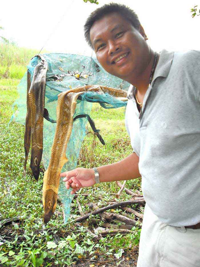 จานปุ๋ย ได้จับออกมาบนศีรษะ แล้วมาลอกหนังตากแห้งเรียบร้อยแล้ว