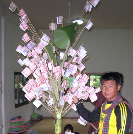 พอถวายพระกฐินเสร็จ พี่ชูก็เดินทางกลับทันที ดูของที่ทางวัดจัดให้สิ นี่แค่ส่วนเดียวนะ ยังมีอีก ขนกลับไม่หมด เป็นงานหัตถกรรมของชาวบ้านแท้
