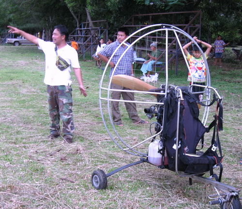 นี่ไง พระเอกในงานนี้ ไม่เหมือนใคร เพราะมีล้อลงด้วย ชาวบ้านชอบใจ เด็กๆวิ่งเข้ามาดูนักบินอย่างใกล้ชิด..