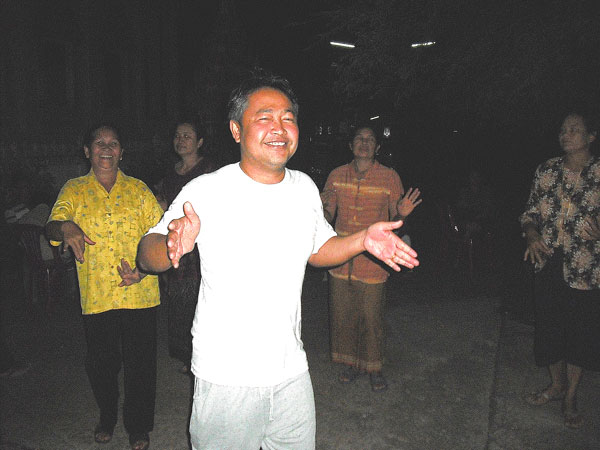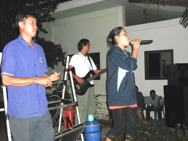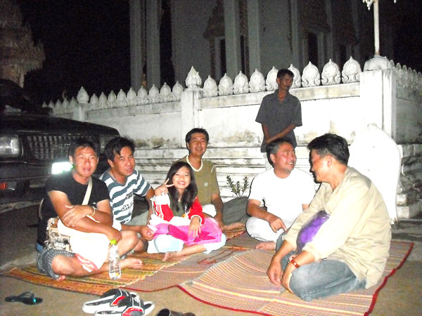อาบน้ำ หาที่นอนที่บ้านของพี่สะใภ้ตายศเรียบร้อย ก็ออกมาจองที่นั่งชมหมอลำซิ่ง... ข้างกำแพงโบสถ์นี่แหละ