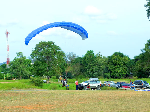 ลืมบอกไป เป็นสนามของกองกำกับการตำรวจตระเวนชายแดนที่ 13 ค่ายพระพุทธยอดฟ้า อ.พนมทวน จ.กาญจนบุรี ธนชนเค้าชวนมาบินเล่น เป็นสนามที่กว้างพอสมควรเลยล่ะ หญ้านิ่มนวลน่าดึงร่มเล่น