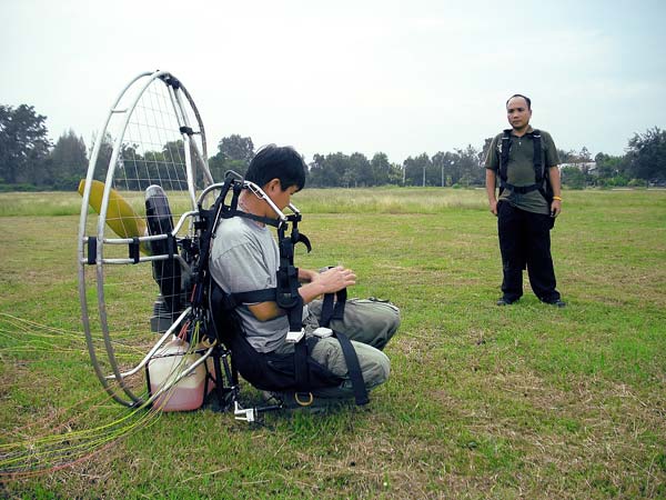 หลังจากคุณโจ๊ค ว่าที่ศิษย์สองพี่น้องคนล่าสุดฝึกดึงร่มแล้ว จานพงค์ก็นำร่มของโจ๊คขึ้นบินทดสอบ