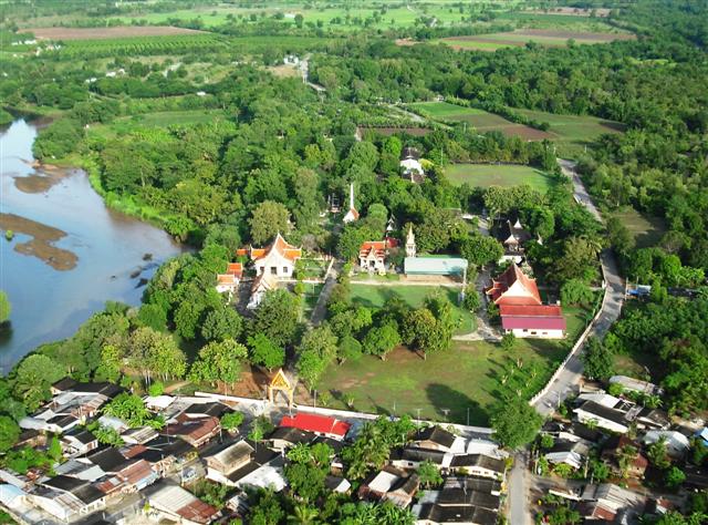 ด้านตรงข้ามศาลเจ้าพ่อเขาชนไก่ เป็นวัดป่าเลย์ไลก์