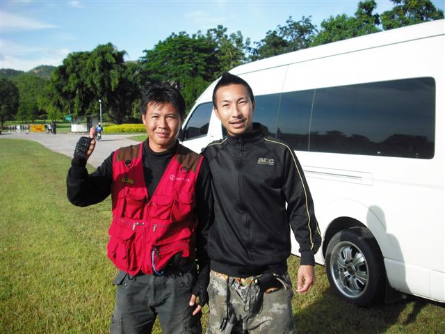 ท่านนี้ เจ้าของบ้านบอกว่า บันทึกวีดีโอไม่ได้ ขออีกรอบ คุณจัมโบ้ก็จัดให้ บรรทุกรถเฮียเบิ้มไปส่งยังทางเข้าสนามกอล์ฟ เทคอ๊อฟบนสะพานข้ามแม่น้ำแควใหญ่กันเลย