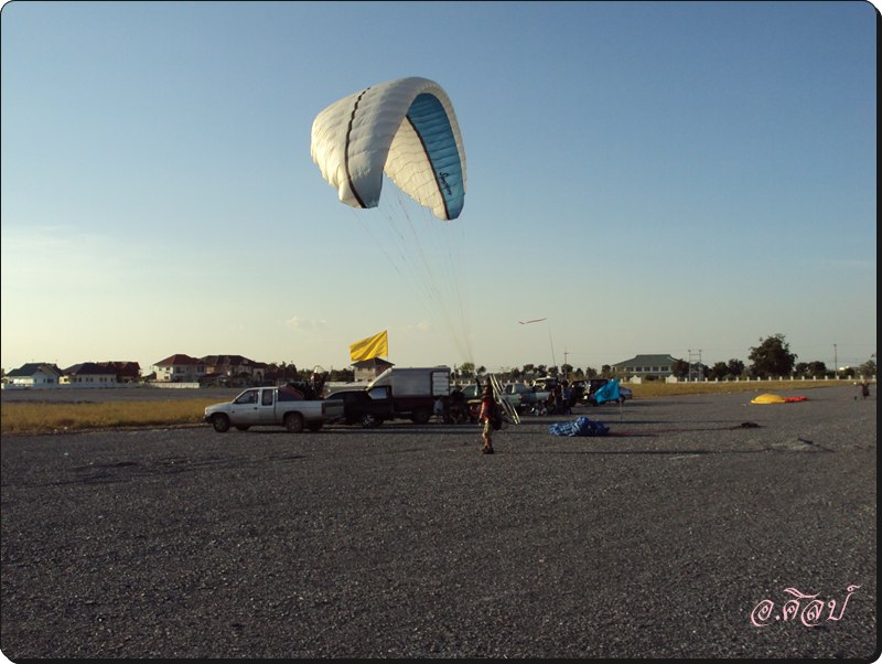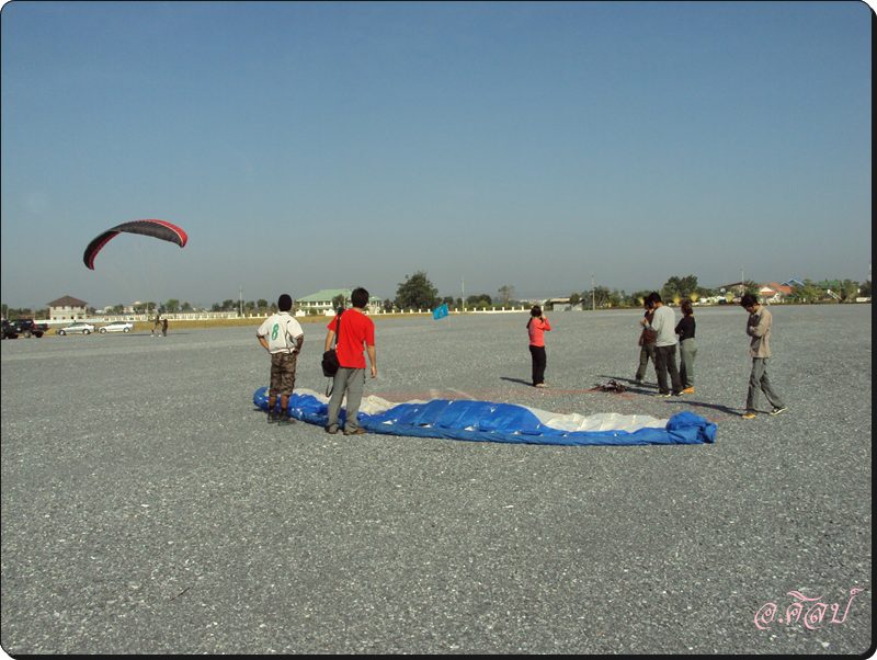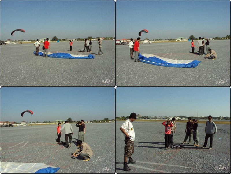 โกสุ่นกำลังฝึกนักบินใหม่ในตอนเช้า อากาศไม่เหมาะที่จะบิน...แต่ เหมาะที่จะดึงร่ม...ตั้งร่ม...