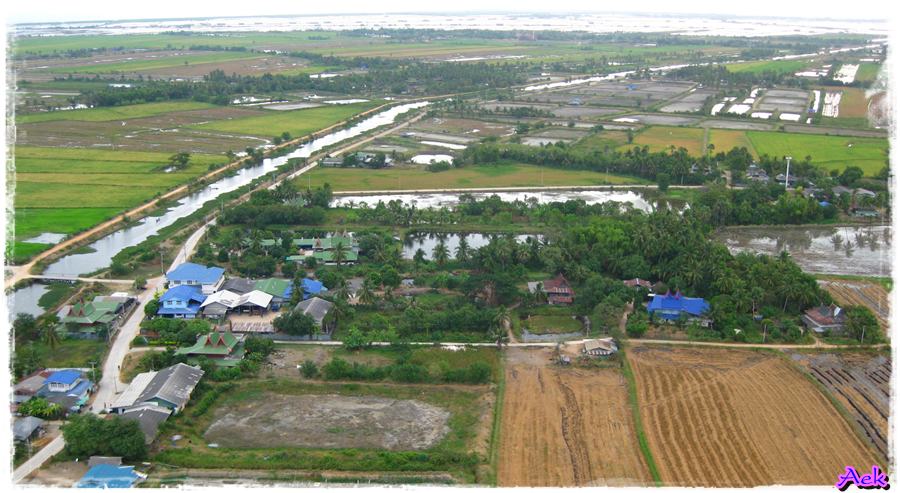 เลยบ้านแหลมมาแล้ว เห็นทุ่งนาก็คุ้นเคย เลยโลวพาสโบกมือให้ชาวบ้านแถวนี้ บินไปซักพักลมทะเลมาแล้วครับ ลมแรงซะด้วย ดันหมอกออกไปทางขวามือแล้ว ช่วงที่ลมทะเลมาดันหมอกนี้ มีตึ๊กตั๊ก นิหน่อย พอให้หายง่วง แต่พอลมทะเลดันหมอกไปได้ ก็เนียน ปล่อยมือเก็บภาพต่อได้ เก็บภาพไป เติมน้ำมันไปด้วย เพลินดีเหมือนกัน