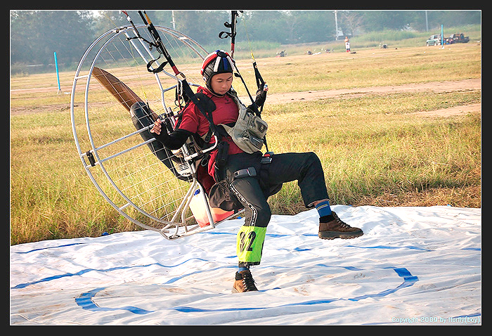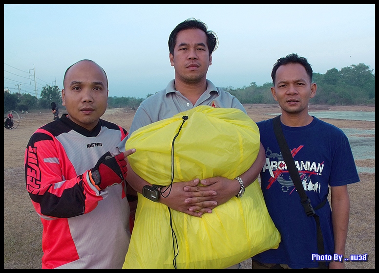 เย็นวันก่อนหน้างาน พี่เขานัดไปคุยกันที่จัดงานสนามหน้าศาลากลางจังหวัด สักพักท่านผู้ว่าเดินมาหา แล้วก็พูดคุยสอบถามเกี่ยวกับร่มบิน ปฏิเสธไม่ลงเลย ดีนะ ได้ตาชูกับเอกมาช่วย