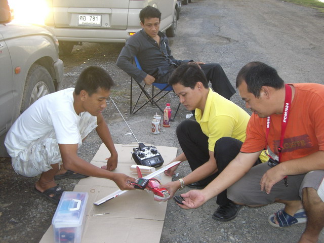 คุณแจ๊ค ผมรู้สึกว่าโชคดีมากเลยที่เมื่อวันเสาร์ผมไม่ว่างเลยไม่ได้ไปบินด้วยกัน เพราะวันนี้(วันอาทิตย์) ขณะกำลังทดลองแรงยกตัวของชุดมอเตอร์และในพัด อยู่ๆ ไอ้ไม้ชุดรองมอเตอร์ที่เคยแตกแต่ติดกาวและเทปไว้ ดันหลุดออกมาดื้อๆ ลองนึกดูนะครับว่าถ้ามันหลุดมาตอนเครื่องกำลังบินอยู่กลางอากาศจะเกิดอะไรขึ้น ไม่อยากจะนึกเลยจิงๆ >.<