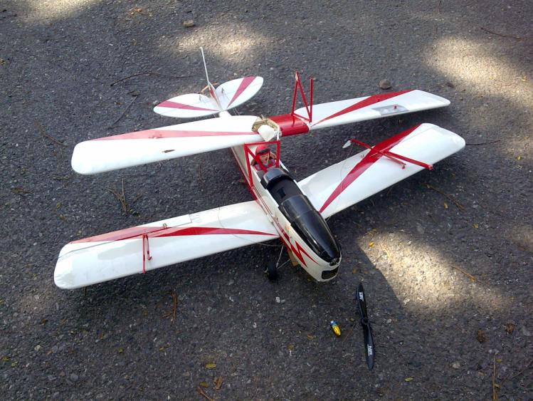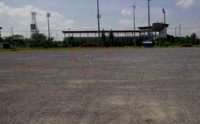 ระหว่างนั้นก็เอาไฟฟ้าขึ้นบินเป็นระยะๆ แต่มันก็จบแบบนี้ด้วยฝีมือผมเอง กะระยะไม่ถูก มือใหม่ก็แบบนี้ชนป้ายเต็มๆ แทนที่จ่าจะสงสาร กลับการเป็น ส. สมน้ำหน้า