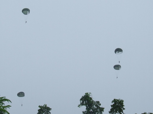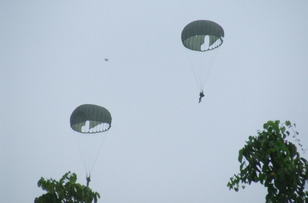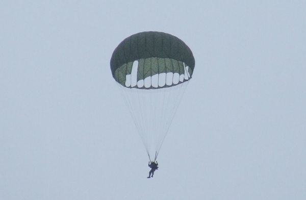 ไม่ใช่ขาดครับ...มันเป็นร่มแต่งครับ เนื่องจากร่มทางยุทธวิธีเดิมมันบังคับทิศทางได้น้อย จึงต้องแต่งเพื่อให้มันสามารถบังคับทิศทางได้มากขึ้นครับ