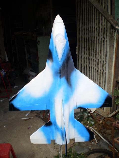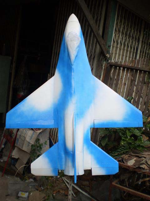 วันนั้ก็ทำสีลำตัว เอฟ 16 ไปแล้วแต่รู้สึกจะได้งานที่หยาบหน่อยเพราะยังไม่รู้ว่าจะบินได้ดีขนาดไหน ลองดูนะครับ...