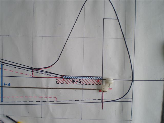 การเขียนกงลำตัวก็คือ วัดจากส่วนที่กว้างสุดและยาวสุดมาลงกระดาษโดยใช้สามเหลี่ยมสร้างเส้นกึ่งกลางเสียก่อน สีเหลืองแก่จะเป็นเนื้อของ F 1 ส่วนสีแดงอ่อนก็คือ
