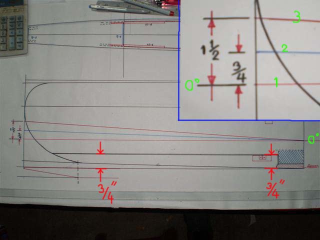 ผมเลยมีมาให้เลือกสองอย่างครับ ถ้าเพื่อนๆทำแอร์ร่อนใส่ปีกก็เอาที่เส้นสีฟ้า (เลข 2 ) ยกปลายปีกที่ 3/4 นิ้ว