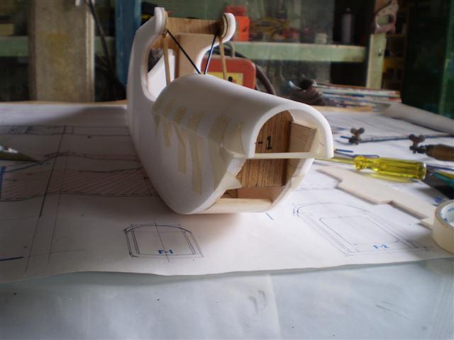 ต่อมาก็เอาแผ่นโฟม 3 ม.ม.มาตัดใกล้เคียงไว้ก่อนเพื่อจะทำฝาครอบเครื่องยนต์ นวดไปเรื่อยไจนโค้งสวยดีแล้วก็แปะเข้าไปครับ....