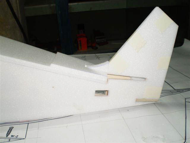 ตรงศรสีแดงผมเพิ่มเนื้อไม้เพื่อหวังว่าเวลาขันสกรูยึดปีก มันจะได้มีเนื้อที่จะยึดเกลียวสกรูได้หลายเกลียวอยู่นะครับ