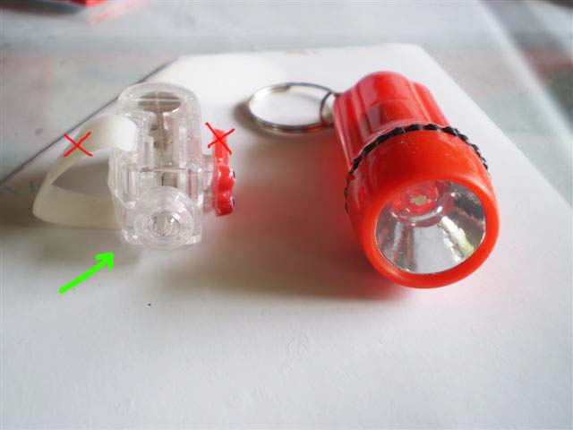 เมื่อเช้าผมวิ่งรถส่งของอยู่แถวๆบ้าน ตาก็เหลือบไปเห็นไฟฉายเด็กเล่นเข้า ในสมองก็นึกแวบขึ้นมาและก็หยิบมาสองอันเพราะยังไม่รู้ว่าจะใช้ขนาดไหน อันละ 5 บาทเองครับ...พอถึงบ้านมาวัดขนาดดูก็เลือกเอาอันสีใสๆนี่ครับ...จัดการตัดสิ่งไม่จำเป็นออก แล้วถอดแยกออกมาต่อสายไฟใหม่ครับ..