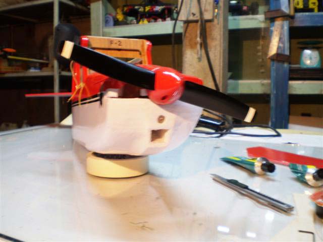เมื่อเสร็จจากปีกก็มาเซาะร่องเพื่อจะยัดแผ่นพลาสติกบานพับกันต่อครับ อ้อ..ผมต้องดัดลวดขาล้อก่อนด้วย