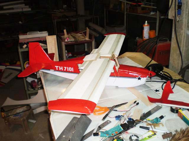 แล้วก็จัดการเปลี่ยนเซอร์โวด้วยที่ปีกหน่ะครับเพราะทีแรกเอา มินิเซอร์ฯ วางลงไปสองตัว เลยเปลี่ยนเอา ไมโครเซอร์ฯ ลงแทนไปเลยทำให้เสียเวลาตรงนี้ไปด้วย...