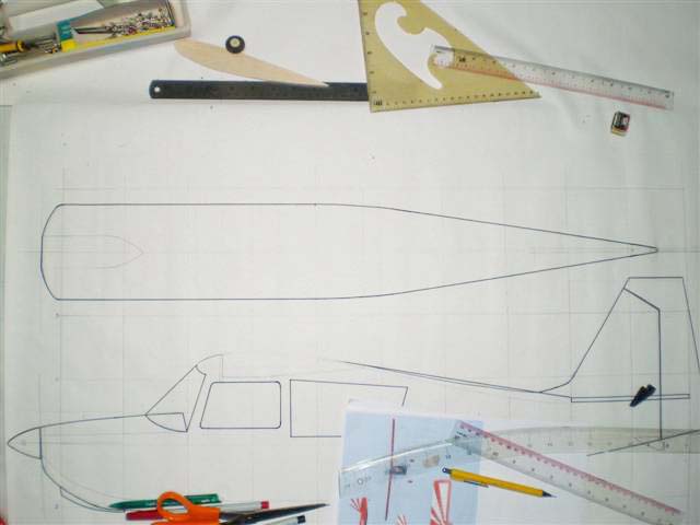 และที่ผมนำเสนอมานี้จะแตกต่างจากเพื่อนอื่นๆอยู่ซักหน่อยนะครับคือ ต้องทำเองตั้งแต่เริ่มขีดเส้นๆแรกเลยจนหลุดออกจากมือบินขึ้นสู่ท้องฟ้าได้เลยนะครับ ทั้งนี้ทั้งนั้นจะไม่เป็นกฏตายตัวอะไรเลย ลำที่ทำอยู่นี้เราย่อขยายจากแบบออกมาเพราะฉนั้นเรื่องอัตราสัดส่วนไม่ต้องพูดถึงครับ อย่าง บ.เทรนเนอร์ที่ผมเคยทำไปนั้นก็เอามาอ้างอิงได้เหมือนกันครับ สมมุติว่าเรามีแค่ภาพด้านข้างภาพเดียว(แต่เดี๋ยวนี้ปัญหาหมดไปแล้ว)เราไม่เห็นเลยว่าแพนฯระดับมีขนาดเท่าไหร่ เราก็จะอาศัยสูตรจาก บ.เทรนเนอร์นั่นแหล่ะมาหาค่าเอาได้ครับ หรือเราอยากจะออกแบบไม่ให้เหมือนใครก็เอาสูตรของ บ.เทรนเนอร์มาใช้ได้เลยครับ