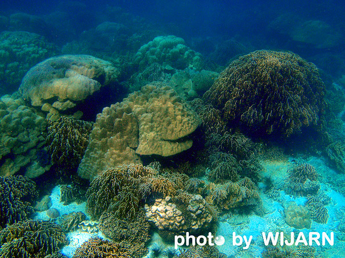 ใต้น้ำที่เกาะหินงาม ตรงนี้ส่วนมากเป็นปะการังแข็งครับ แนวปะการังกว้างใหญ่พอสมควร น้ำลึกประมาณแค่สามสี่เมตร