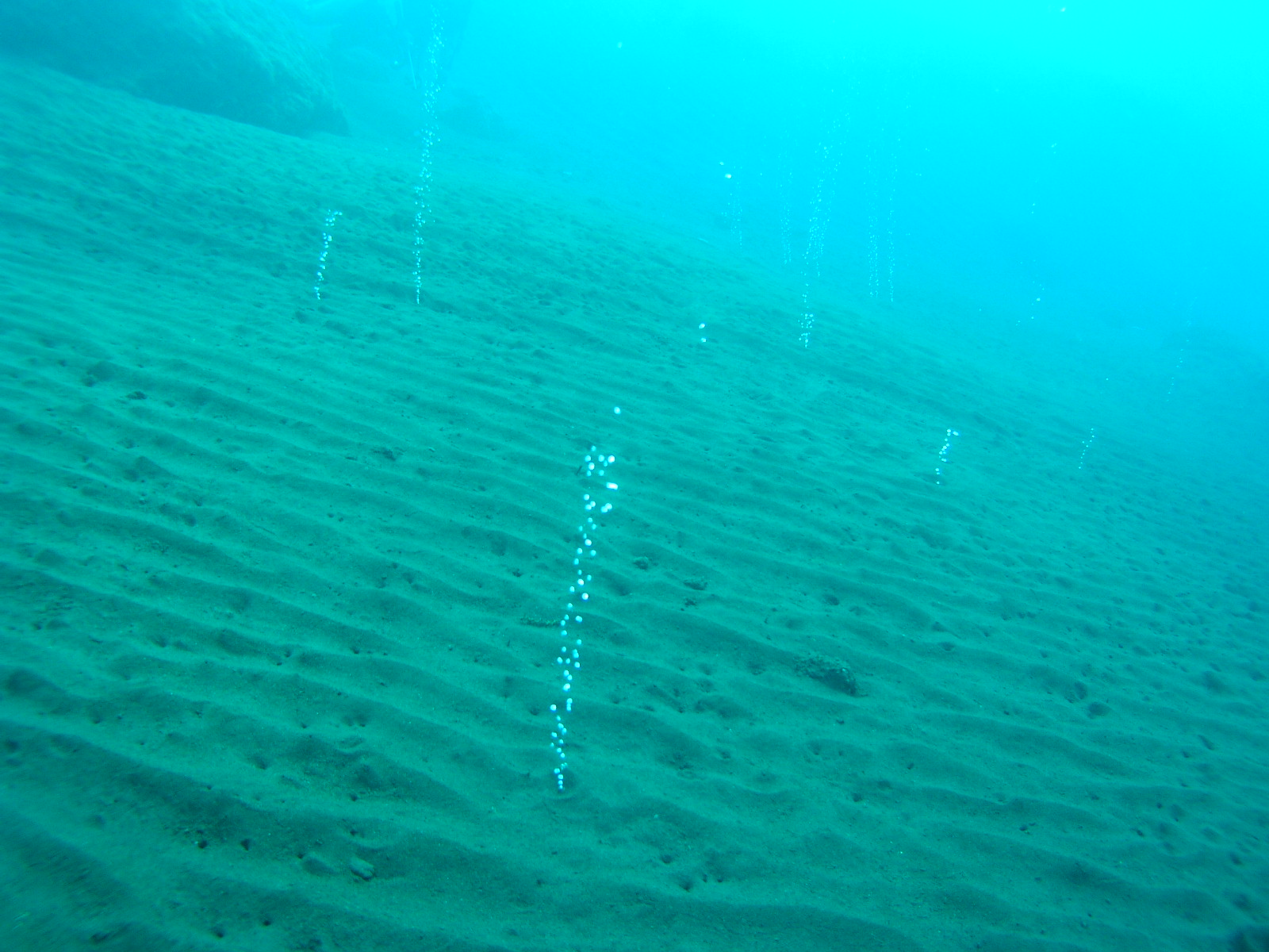 นี่สิแปลก เป็น ก๊าซ ที่โผล่ออกมาจากพื้นทราย และใต้พื้นทรายจะอุ่นมากทดสอบโดยการถอดถุงมือแล้วซุกลงใต้พื้นทราย เพราะด้านล่างเป็นภูเขาไฟใต้ทะเล