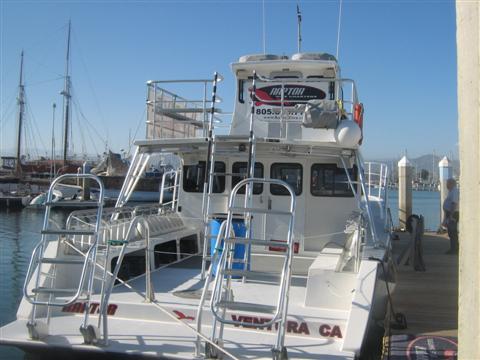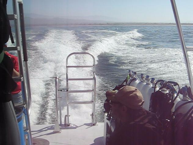 เรือ Raptor เป็นเรือใหม่ทันสมัย บรรจุอุปกรณ์สำหรับดำน้ำครบ มีไฟส่องใต้น้ำสำหรับนักดำตอนกลับเรือ มีเครื่องยนต์ 375 แรงม้าสองตัว ความเร็วเดินทาง 25 น๊อต จุได้ 35 คน เราจะต้องเดินทางไปที่เกาะ Santa Cruze ห่างออกไป ประมาณ 45 นาทีด้วยความเร็วสูงสุด