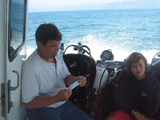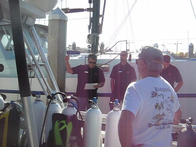 17 Jul 2010 ช้ากว่าเมืองไทย 1วัน เรามาถึงที่เรือ Raptor Dive boat แต่เช้า ได้พบกับ Instructor Mike Doyon ได้แนะนำตัวว่าเรามาจากเมืองไทยเพิ่งได้ PADI certification มาใหม่ๆช่วยดูเราด้วยนะ ส่วน Mike เราแอบเห็นเขาติดยากันเมาคลื่นที่หลังใบหู เรารู้จักยาตัวนี้ดี