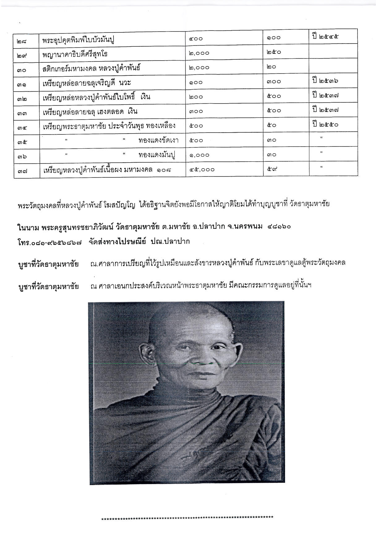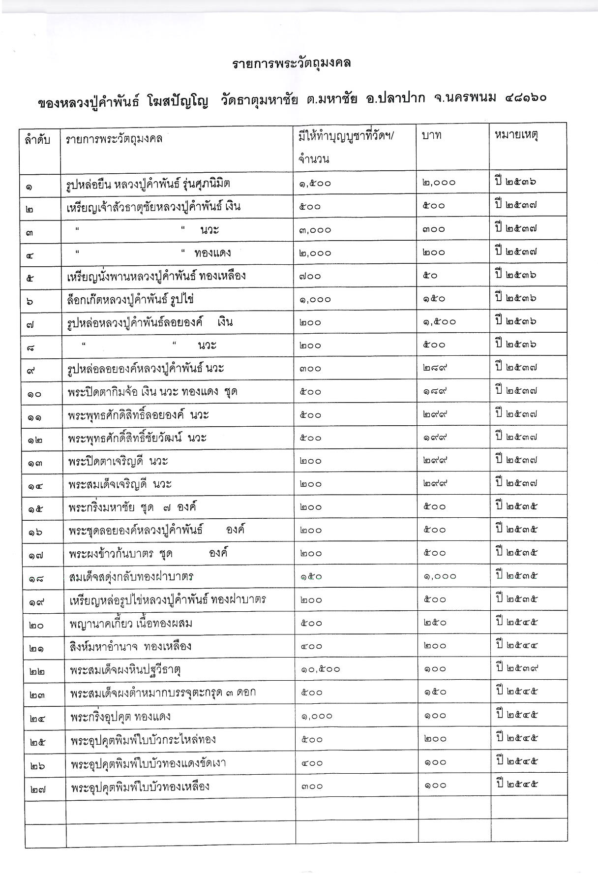 ติดต่อได้ที่วัด ธาตุมหาชัยได้เลยครับ