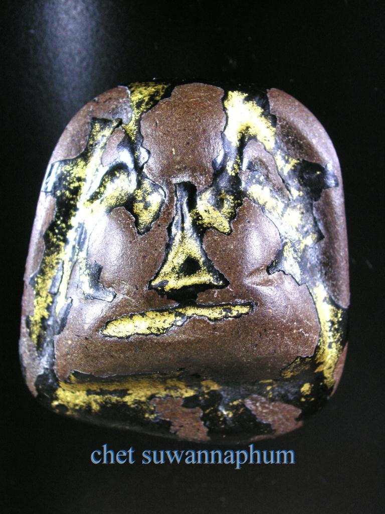 นอกจากเนื้อผงแล้ว ยังมีเนื้อตะกั่ว ด้านหลัง จารึกอักขระ " พุทโธ" , " ยันต์เฑาะว์ " และหลังเรียบ มีขนาดไม่มาตราฐาน เนื่องจากการเทตะกั่วลงในแบบพิมพ์ฝาเดียว ข้อสำคัญ.....ให้ดูเนื้อตะกั่วต้องมีความเก่า คราบไขต้องมี เพราะอายุการสร้างลุมาถึงปัจจุบัน ( 2555 ) ไม่ต่ำกว่า 120 ปี ริ้วรอยของธรรมชาติปรุงแต่งจะต้องปรากฎให้เห็นบ้างไม่มากก้อน้อย