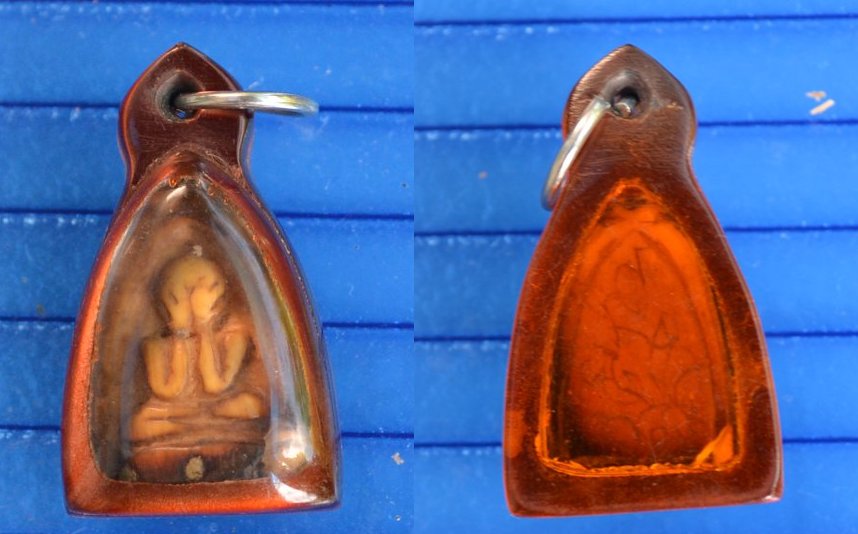 ด้านหลังครับ รอยสีขาวเกิดตอนแกะพระจากกรอบ