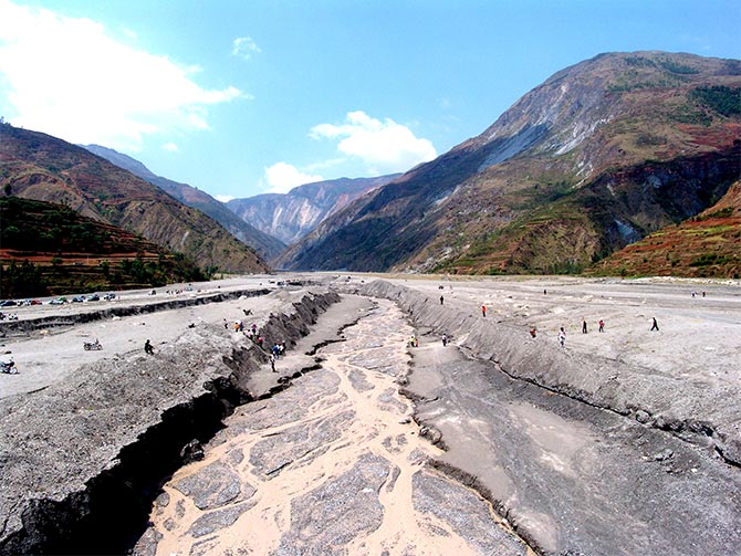 จุดดักการชมวันนี้เป็นเรื่องยากที่จะติดตามชมดูได้ถ้วนทั่วๆตลอดสายน้ำ แต่มาหนนี้ได้คุณไรโน หรือคุณแรดเมืองจีน อดีตตัวแทนนักแข่งออฟโรดจีนที่เคยไปสมรภูมิออฟโรดระดับโลกที่ประเทศมาเลเซีย เลือกพาลุยเข้าไปบริเวณก้นแม่น้ำแถวๆเจียงลี่จวงตุ้ยเหมี่ยน พื้นที่ตรงนี้เหมือนเป็นเกาะหรือเนินเขาเล็กๆอกแตกแยกออกเป็นสองสามช่องทางกลางแม่น้ำ เกิดหน้าผาชันเล็กๆขนาบร่องทางน้ำแห้งๆแคบและกว้างตลอดแนวประมาณ 300 เมตรกลายเป็นทางเลือกให้นักแข่งต้องตัดสินใจอย่างรวดเร็วลุ้นจะเข้าช่องไหน ถึงไม่มีกับดับอันตรายหรือน่ากลัวทั้งสองสามทาง แต่พื้นหินกรวดก้อนเล็กๆพร้อมที่จะทำให้รถยนต์ของมังกรดุทั้งหลายพลิกคว่ำกลิ้งได้ทุกวินาที และช่วงสองฝั่งแม่น้ำวิวทิวทัศน์แถบนี้ก็สวยงามแฝงความน่ากลัวหวาดเสียวสุดๆ จากภูเขาสูงหน้าผาชันเก้าสิบองศาขนาดสูงมากกว่าตึกสิบชั้น ซึ่งผู้ชมที่มารุมดูการแข่งขันหากกลัวความสูงจำเป็นต้องอยู่ห่างจากขอบหน้าผา และบนหน้าผาจะเห็นรถยนต์แข่งขัน มีขนาดเพียงประมาณเล็กกว่าหัวนิ้วโป้งเท่านั้น และเมื่อเลยไปจากเกาะแก่งร่องเขาเล็กๆกลางแม่น้ำนี้ออกไป เป็นบริเวณกว้างขวางเวิ้งว้าง ท้องน้ำแห้งๆส่วนใหญ่พื้นดูราบๆปนทะเลหินใหญ่เล็ก จุดนี้น่าจะกว้างกว่าแม่น้ำเจ้าพระยาประมาณสี่ห้าเท่า แต่กลับมองไม่เห็นจอมยุทธหรือนักบู๊แรลลี่ออฟโรดมังกรดุทั้งหลายทีมใดๆ กล้าท้าทายลุยฝ่าออกกลางท้องน้ำ เลือกเส้นทางลัดตัดหาไลน์ใหม่สั้นๆ ทุกทีมจึงยังคงวิ่งไล่บี้กันอย่างเมามันส์ตามรอยเดิมมาอย่างเป็นระเบียบ และกับดักหินกรวดเล็กๆตรงนี้ก็ได้ทำให้ทีมบู๊มังกรดุจากเมืองซื่อชวนพลาดท่าต่อหน้าต่อตา เส้นสังเวยพระแม่น้ำเฉียวเจียง กลิ้งพลิกเหมือนลูกขนุนบนถนน เมื่อเจอฤทธิ์เดชทางร่องน้ำถนนดินปนหินกรวดทรายเล็กๆลอยหน้าขรุขระ ดูเรียบๆง่ายๆไร้พิษสงปราบมังกรหมดฤทธิ์หมดเดชไปอีกหนึ่งทีม และใกล้ๆกับบริเวณนี้เป็นเส้นทางบังคับให้เลียบฝั่งแม่น้ำตลอดแนว กับดักอุปสรรคมีทางโคลนตื้นๆพื้นแข็งๆบ้างเล็กน้อย ทะเลหินก้อนเล็กใหญ่ ทางคดโค้งขึ้นลงเนินสูงเนินต่ำและเวิ้งคดโค้งใกล้ต้นทางน้ำภูเขาสูงริมฝั่ง ที่ทำให้กลายเป็นเส้นทางหลอกล่อคล้ายวังวนให้บางทีมเสียเวลาหลงทาง พลาดท่าพยายามขึ้นไปบนฝั่งภูเขาสูงแทนที่จะเลาะไปตามริมฝั่งทางในแม่น้ำ สำหรับทีมนักบู๊ที่สามารถผ่านรอดไปได้จนถึงอาหวั่นต้าเฉียวจุดสิ้นสุดการแข่งขัน พื้นที่เส้นทางแข่งช่วงท้ายๆนี้ จะต้องผ่านไร่แตงโม ที่ปลูกกันเต็มพื้นที่ทั่วท้องแม่น้ำเฉียว