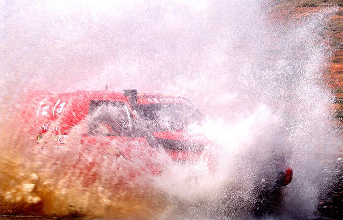 ภาพเหล่าจอมยุทธและนักบู๊มังกรจีนคนองศึกจำนวนทั้งหมด 85 ทีม ได้ใช้ความเร็วบุกตะลุยในพื้นสนามซึ่งเป็นก้นท้องน้ำธรรมชาติของแม่น้ำเฉียวเจียง ในทุกๆช่วงสลับสองสามนาทีนั้น เป็นความมันส์เร้าใจที่บู๊กระโจนสาดใส่สู้ร่องเล็กน้ำใสและหินแข็ง แต่ละทีมล้วนแล้วใช้ทักษะเหิรกระแทกอย่างไม่เกรงกลัว บางครั้งต้องถลาหักเลี้ยวหลบหลีกหินใหญ่ ทางโค้งแคบ สะพานพังและเสาตอม้อ และหลายครั้งยังได้ลุ้นความมันส์ ที่มีทีมบู๊ไล่มาทันกันแล้วพยายามเบียดบี้จะแซงกันให้ได้ ด้วยลีลาไม่ยั้งมือยั้งเท้า นี่เป็นศึกผจญภัย4x4ออฟโรดท้าทายในเส้นทางธรรมชาติของจริง ที่ให้ความลุ้นมันส์เร้าใจสนุกสนานตื่นเต้นทั้งนักบู๊และผู้ชมเกือบทุกนาที