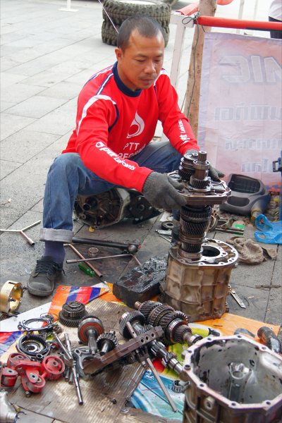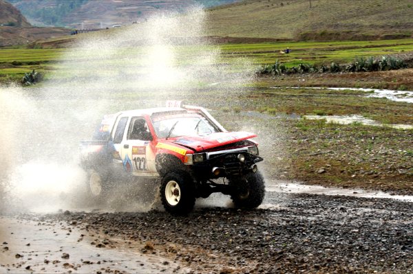 " เหม่ยหวั่นถีไม่เป้นไร เรื่องภาษาจีนเพราะเรื่องมั่วๆผมถนัด เขออี้พอได้ขี้งูๆขี้ปลาๆ และภาพที่ส่งข่าวมาให้ดูกัน เป็นภาพทีมไทยออกเดินทางจากชายแดนสปป.ลาว มาถึงคุนหมิงประมาณตีหนึ่งและถ่างตากันมาจนถึงเมืองตุงชวนตีสี่ครึ่ง ท่ามกลางความดีใจของช่างเทคนิคและคนไทยที่กำลังรออาหลั่ยจากทีมไทย เนื่องจากทีมแชมป์จีนได้มาเมืองไทยและลงทุนซื้อเครื่องยนต์ 1KZ และวีโก้จากไทยเพื่อเอามาลงแข่ง โดยมีช่างเทคนิคไทยสองคนตามมาก่อนหน้านี้ เพื่อดูแลเครื่องยนต์หลังการขายให้ด้วย ซึ่งหลังจากแค่พยายามทดลองเครื่องยนต์ตัวใหม่จากไทย ปรากฎว่าแค่เหยียบรถยนต์มันส์เท้ามาได้แค่ริมฝั่งแม่น้ำเฉียวเจียงหฤโหด เป็นเส้นทางการแข่งขันที่ผู้จัดอนุญาติให้ทุกทีมทดสอบในสนามได้ก่อนทำการแข่งขัน รถยนต์สายพันธ์ไทยทนเท้าจอมยุทธออฟโรดจีนไม่ไหว เครื่องยนต์พังกระจาย อันเป็นเหตุให้ทีมไทยต้องตั้งหน้าบึ่งรถรีบเร่งมาอย่างเร่งด่วน ไม่ยอมหยุดนอนพักที่เมืองคุนหมิง เพื่อเอาอาหลั่ยมาซ่อมทันลงทดสอบในแม่น้ำหฤโหดวันที่ 29 เม.ย.54"