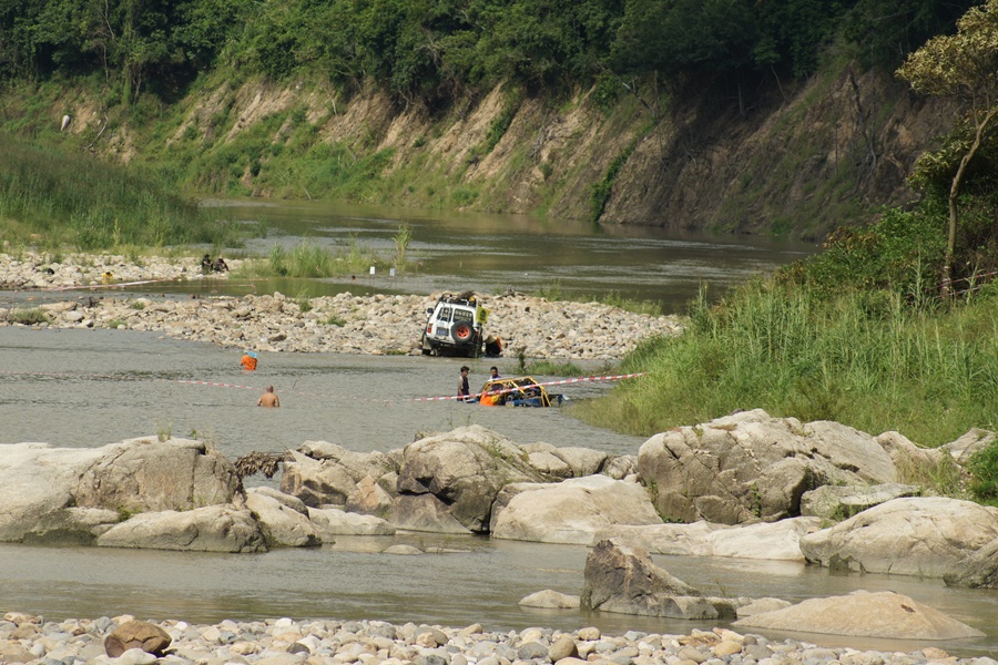 SS 13 เป็นไฮไลท์สุดยอดความโค-ตะ-ระหฤโหดของวันนี้ ความยาวไปกลับประมาณ 800 เมตร เวลากำหนดให้ 15 นาที ข้ามลำธารไปมา ตัดผ่านน้ำไหลเชี่ยวแรงพื้นน้ำเต็มไปด้วยก้อนหิน ต้องวิ้นช์ขึ้นฝั่งผาดินสูงชันฝั่งตรงข้ามแล้ววนกลับลงลำธารน้ำเชี่ยว เพื่อมากดหยุดนาฬิกา มีจอมยุทธออฟโรดหลายทีมต้องจมคากลางน้ำ มีน้ำท่วมท่วมถึงหน้าอก DNFไปหลายทีม!