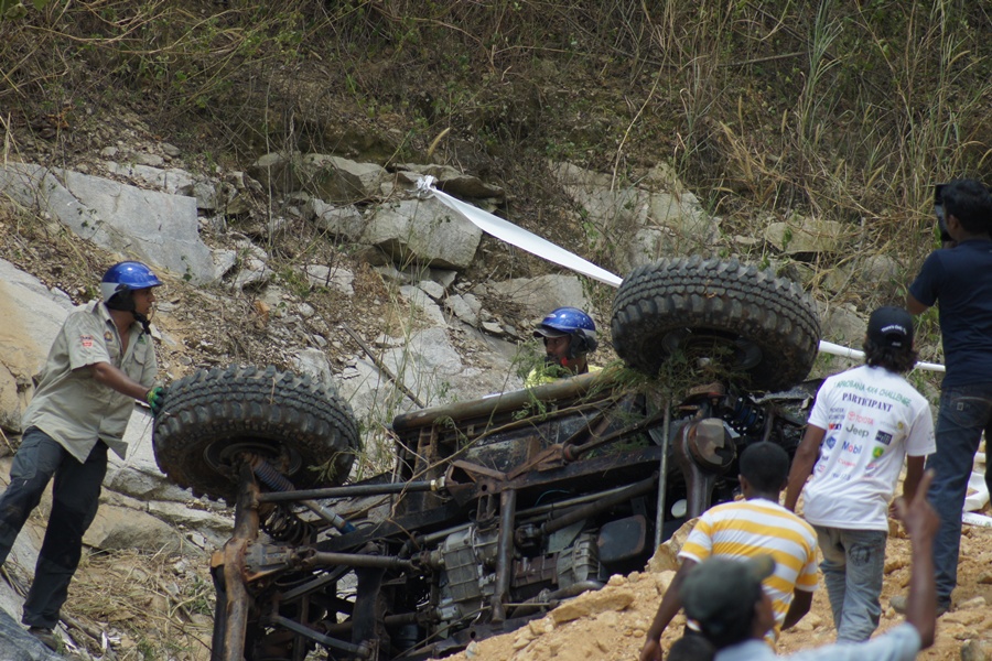 ต่อมาความมันส์เร้าใจออฟโรดยังไม่ทันจางหาย สุดยอดจอมยุทธออฟโรดศรีลังกาหมายเลข 105 อดีตแชมป์รายการนี้ปีที่แล้ว Indika SAnjaya / Navin Parapana ลงบู๊ตามมาติดๆเป็นคันที่สอง แม้นว่าได้ใช้วิ้นช์หลังช่วยหย่อนรถยนต์ลงมาแล้ว ดันเกิดพลาดพลั้งรถยนต์กระเด้งหน้าผามรณะทำให้สายสลิงขาด หงายหลังตีลังกาลงมาจนหมดฤทธิ์เดช สังเวยจ้าวที่ไม่เชื่ออย่าลบหลู่ ประเดิมคิวอาถรรพ์หม้อแม่นาค รอดตายและไม่บาดเจ็บแม้นแต่นิดเดียวเป็นทีมที่สองทันที !